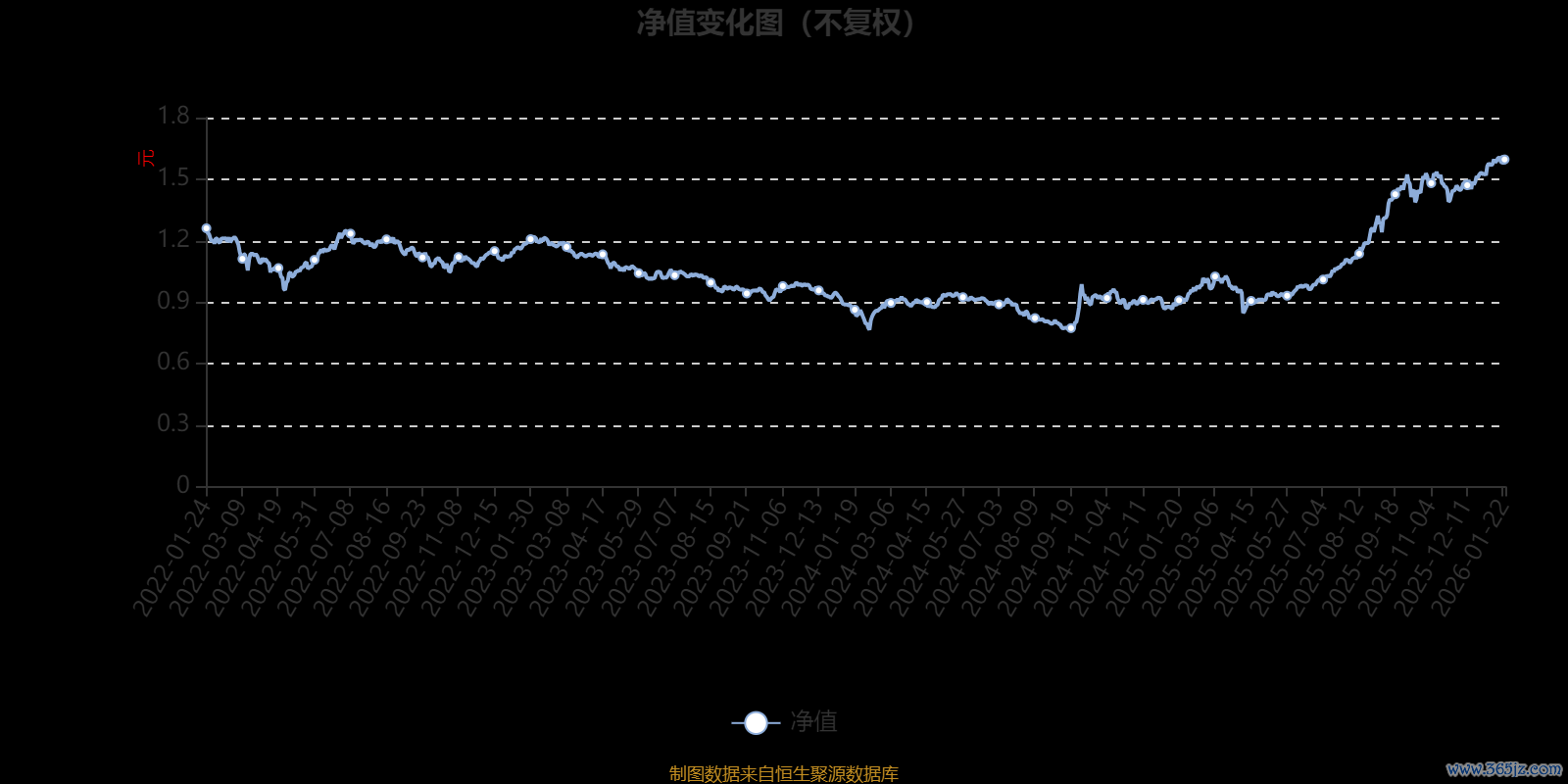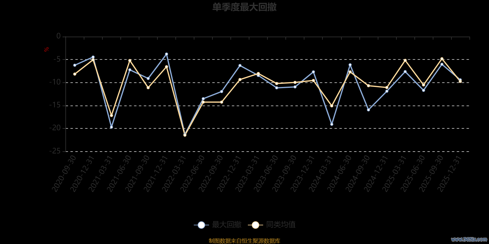 通过所选区间该基金净值增长率分位图,可以观察该基金与同类基金业绩比较情况。图为坐标原点到区间内某时点的净值增长率在同类基金中的分位数。
