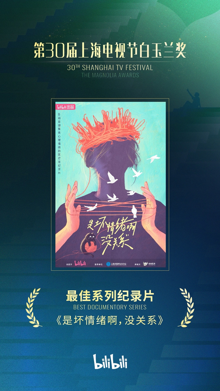 昨晚举行的第30届上海电视节“白玉兰绽放”颁奖典礼上,哔哩哔哩(B站)出品的纪录片《是坏情绪啊,没关系》从360余部海内外作品中脱颖而出,荣获最佳系列纪录片奖项。在该奖项入围的5部作品中,这是唯一一部由国内独立出品制作的项目。