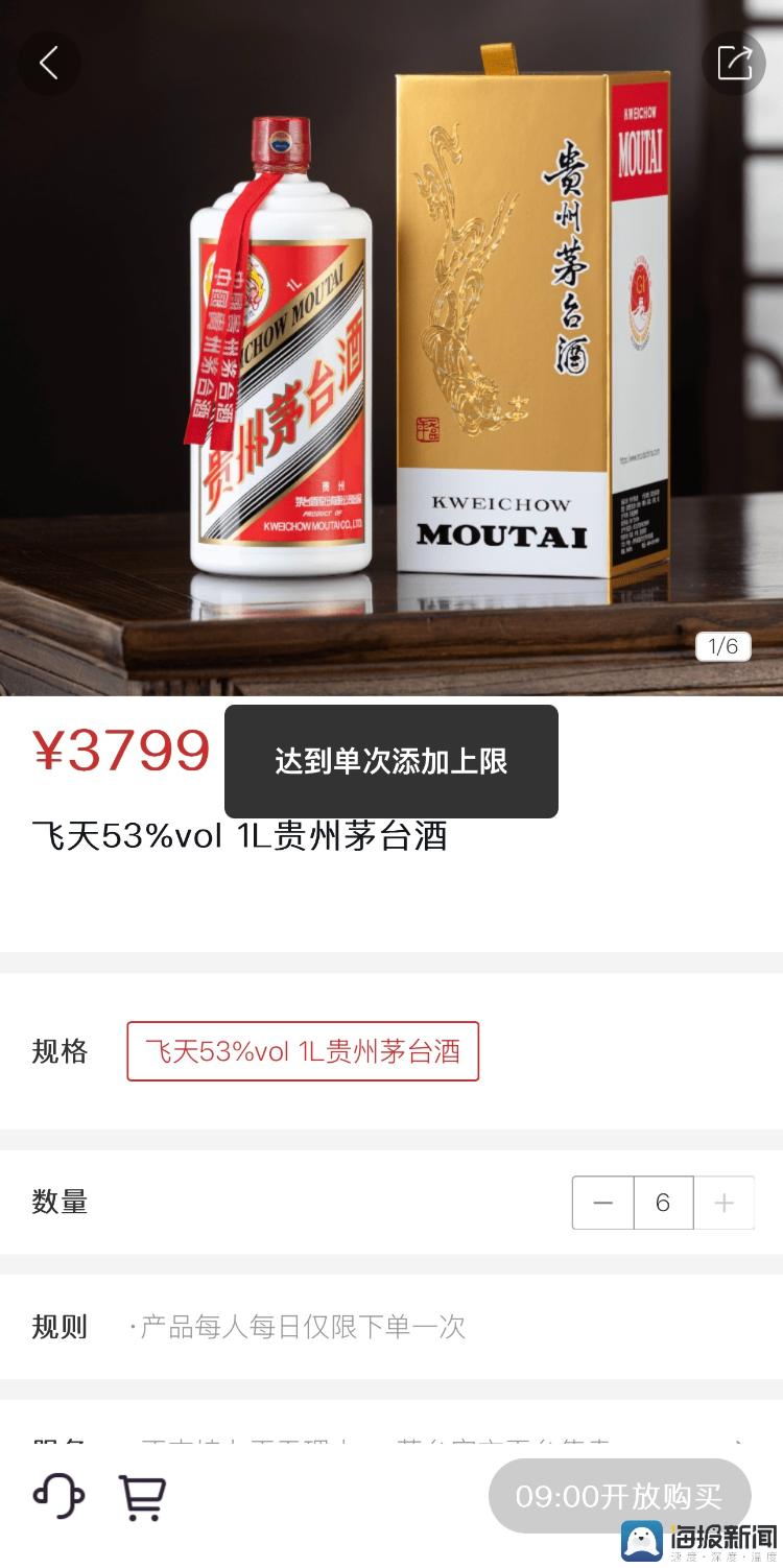 6月29日,飞天53%vol 1L贵州茅台酒登陆“i茅台”APP。6月29日起,每日09:00—10:00,用户可在“i茅台”APP“畅享·云购”商城购买飞天53%vol 1L贵州茅台酒,同一用户每日至多购买1次,每次购买数量为1—6瓶。