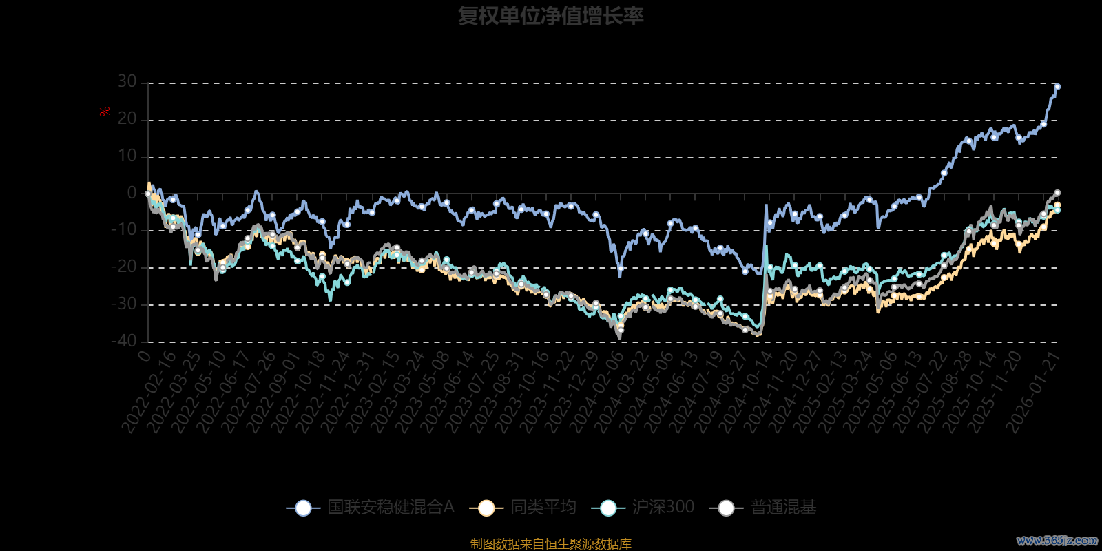 截至1月21日,国联安稳健混合A近三个月复权单位净值增长率为10.72%,位于同类可比基金47/134;近半年复权单位净值增长率为22.77%,位于同类可比基金53/134;近一年复权单位净值增长率为40.12%,位于同类可比基金32/131;近三年复权单位净值增长率为30.74%,位于同类可比基金34/124。