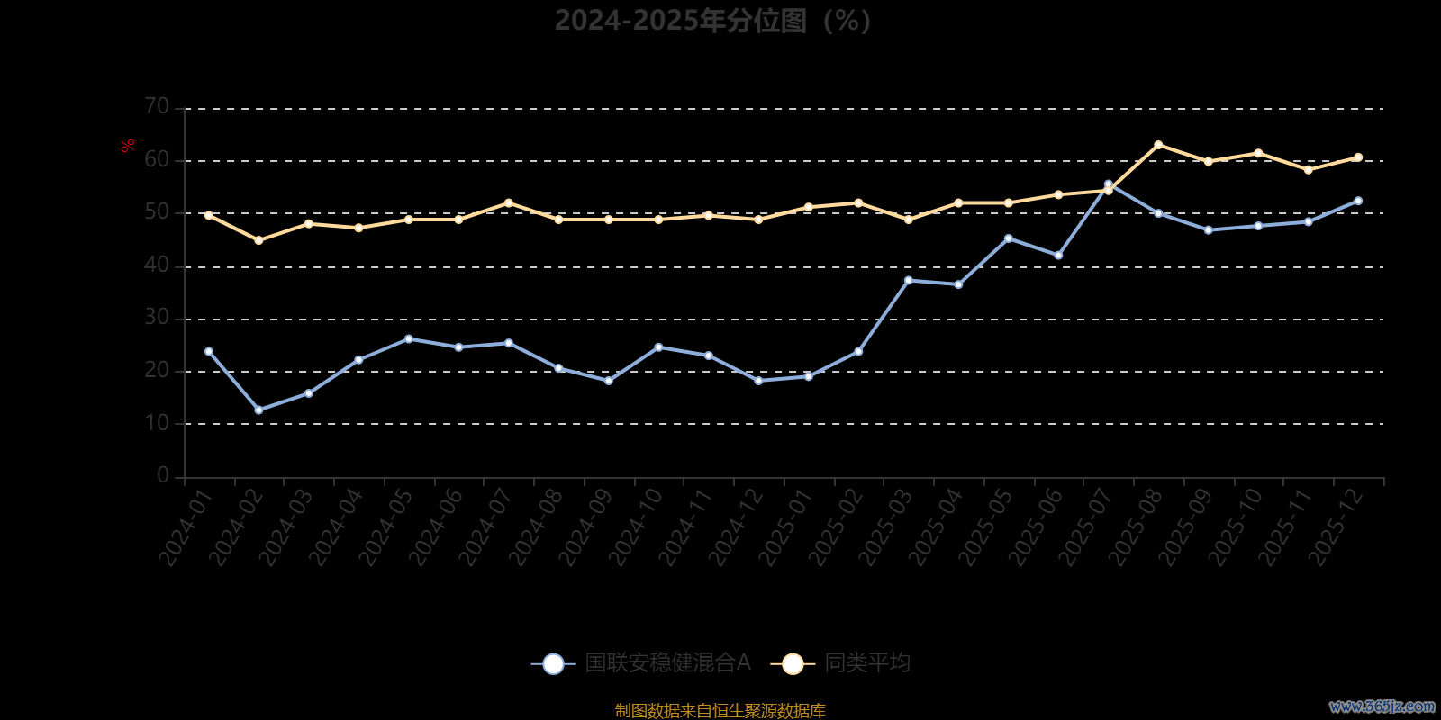 通过所选区间该基金净值增长率分位图汇银配资,可以观察该基金与同类基金业绩比较情况。图为坐标原点到区间内某时点的净值增长率在同类基金中的分位数。