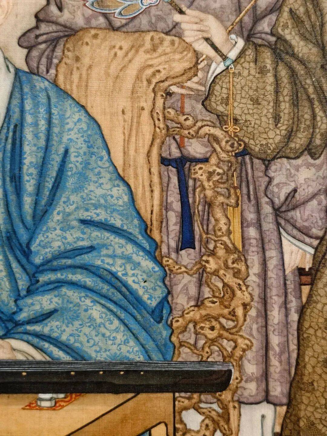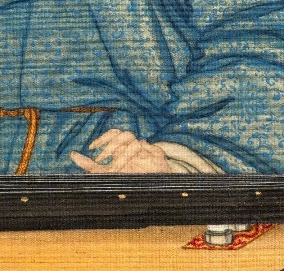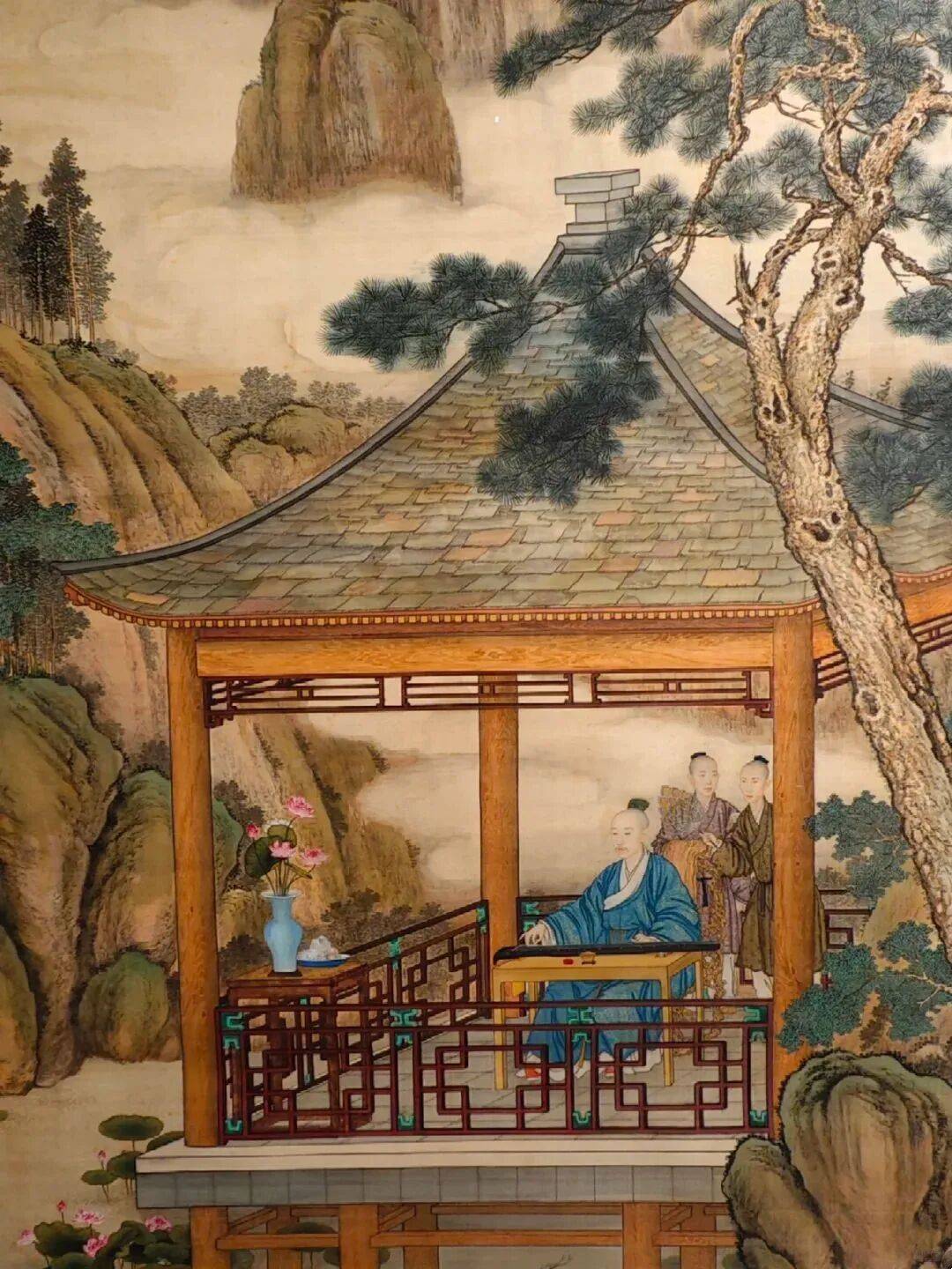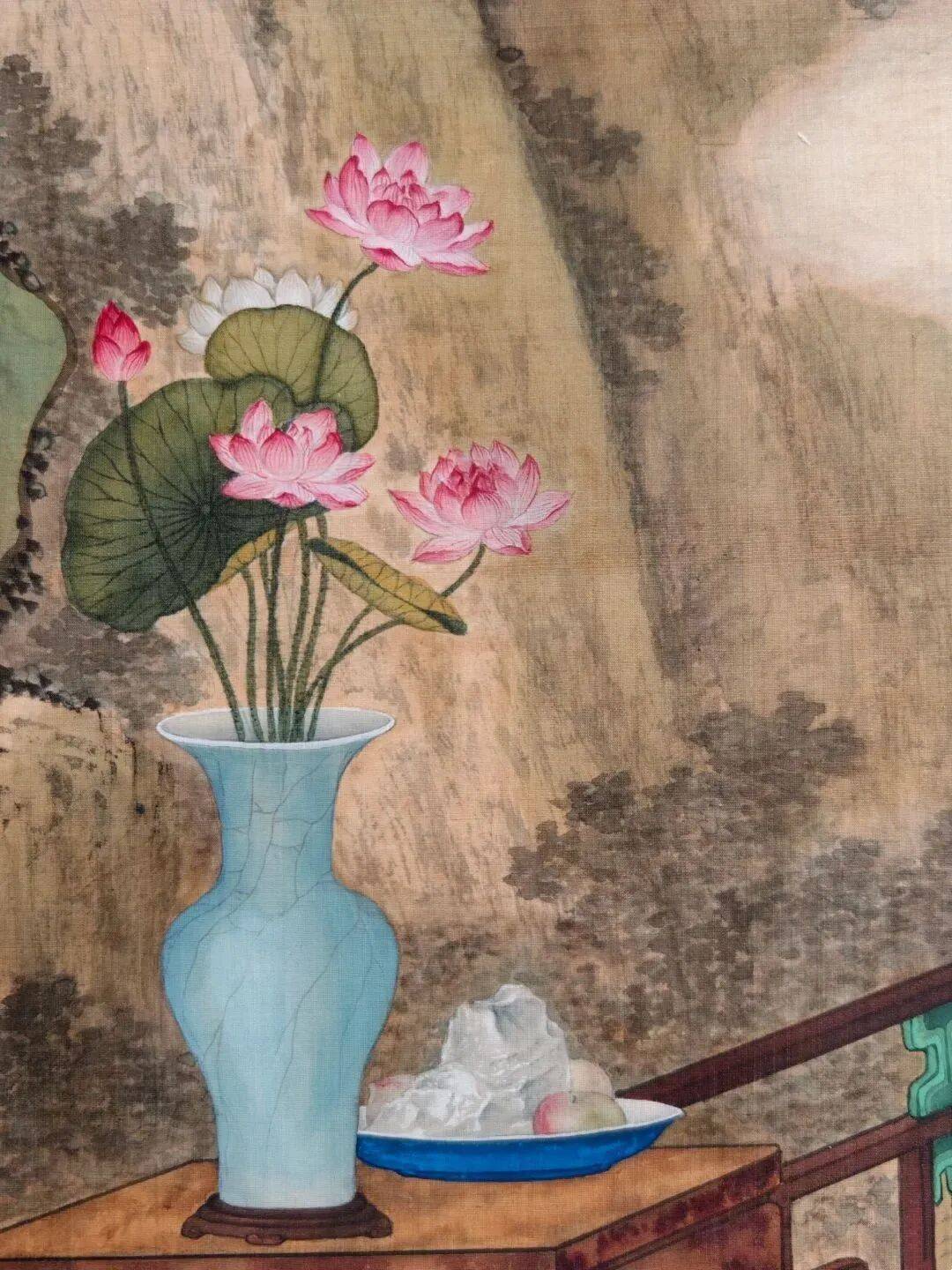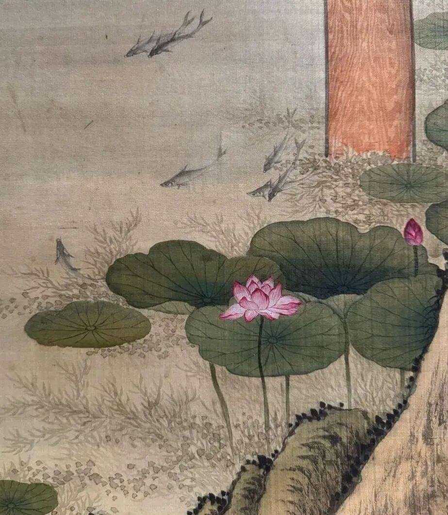 作为“西学东渐”的视觉注脚,此画超越了单纯的技法融合,成为乾隆朝文化自信的隐喻——帝王以抚琴姿态统摄中西,在荷花清韵与高山流水中,完成对“天朝上国”文化主体性的视觉宣示。